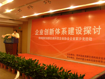 2008年10月10日下午3:30我公司与常州国家高新区高科技企业协会共同举办了企业家沙龙活动,本会邀请了省、市区科技部门相关领导和相关建有省、市工程技术核心或外商研发机构的企业家们共聚一堂,畅所欲言。